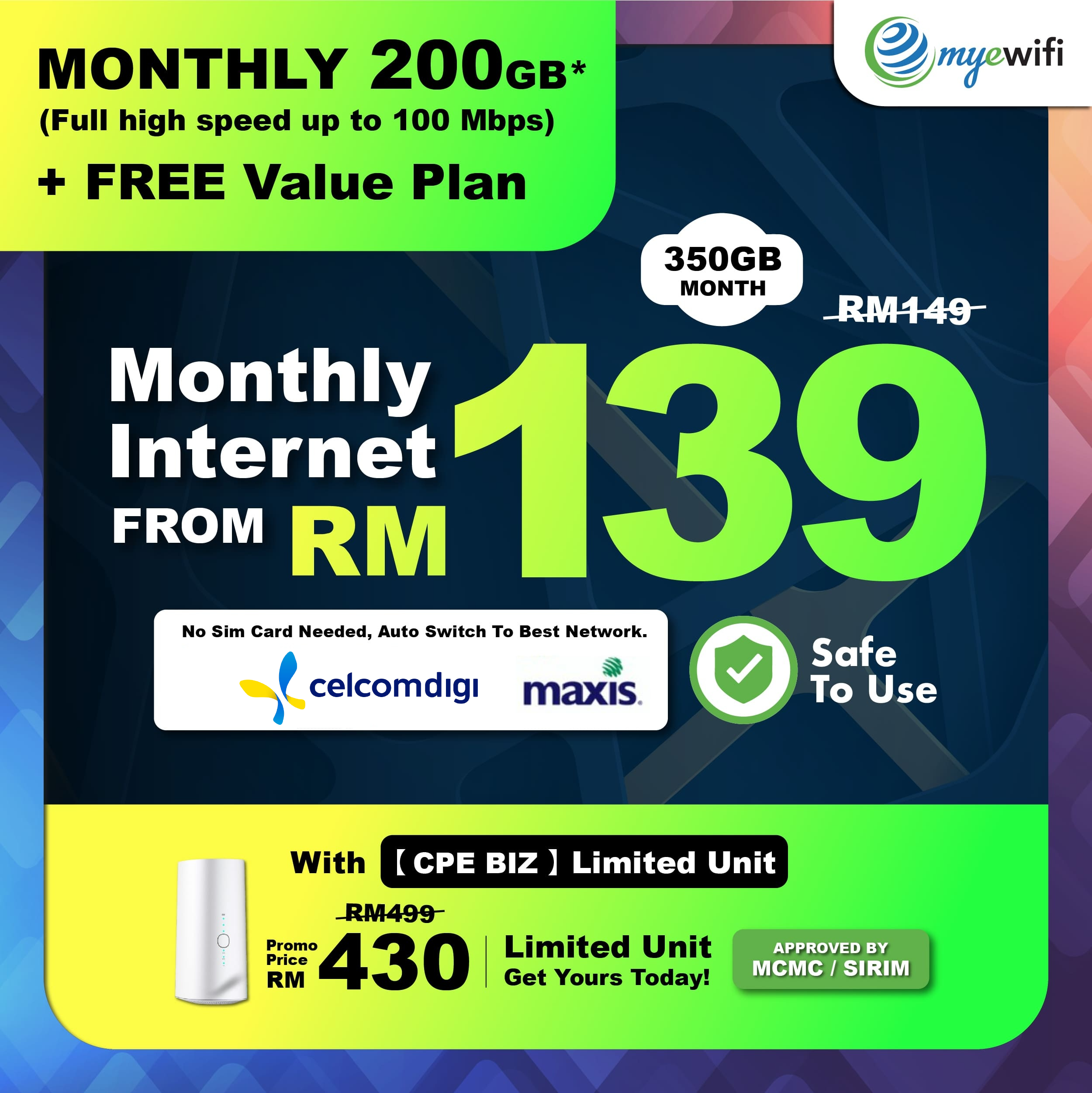 Skim sewa bulan kemudian high speed 200GB + value unlimited 只限续费(租)