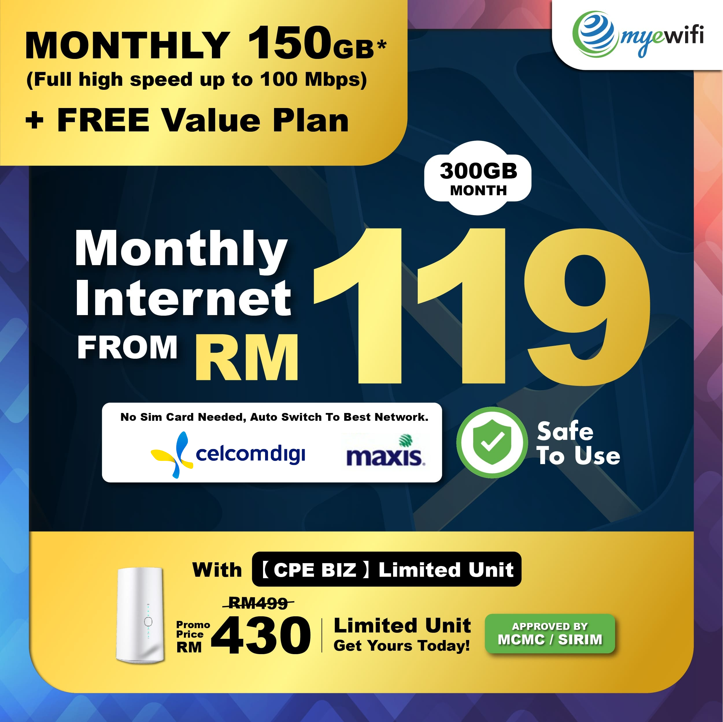 Skim sewa bulan kemudian high speed 150GB + value unlimited 只限续费(租)
