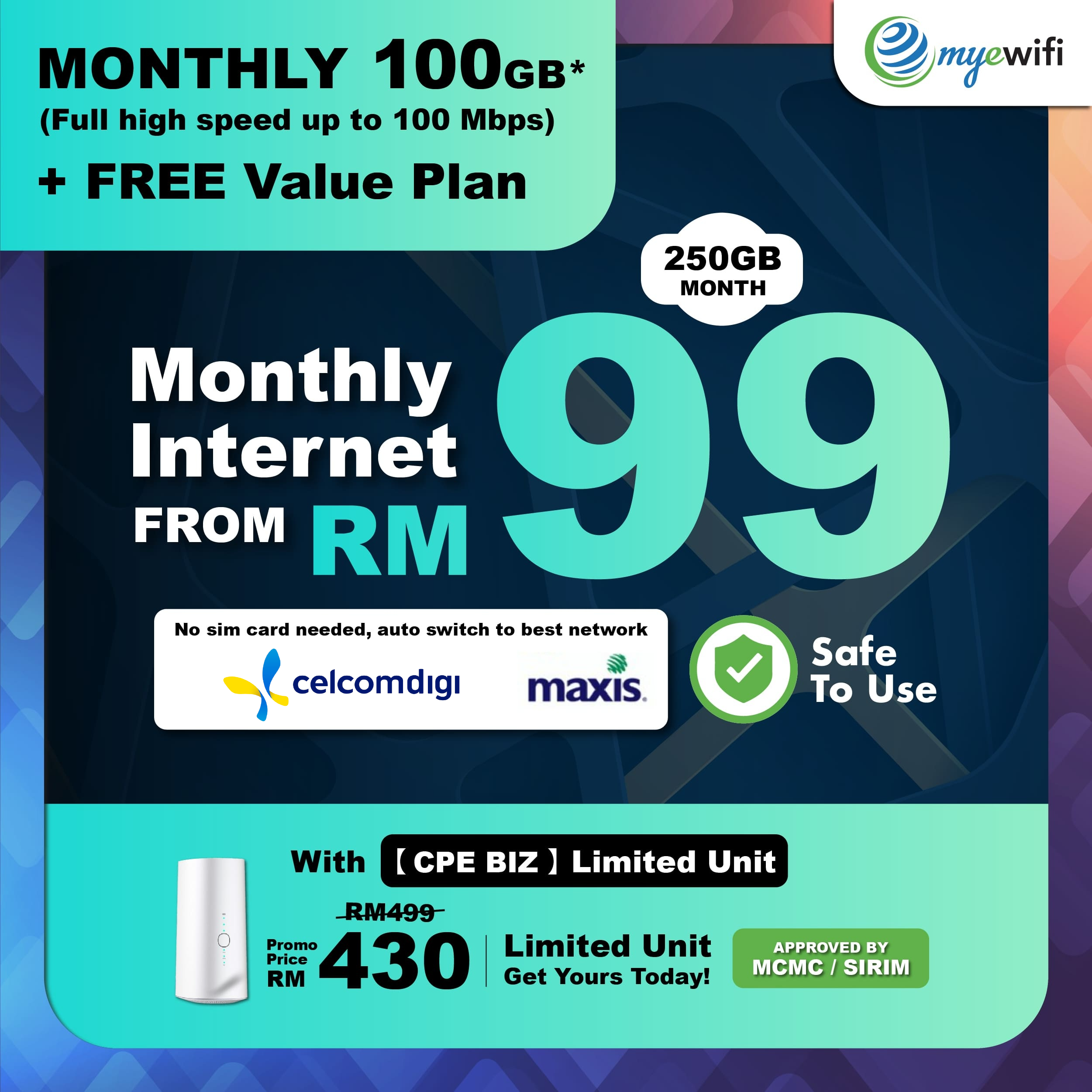 Skim sewa bulan kemudian high speed 250GB + value unlimited 只限续费(租)